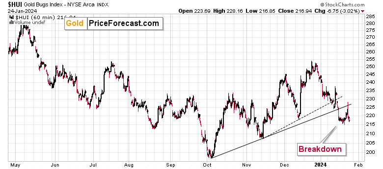 That’s exactly what happened. The head and shoulders pattern was not invalidated – it was verified thanks to the decisive comeback below the neck level. Besides, the GDXJ was trading above it only for about 15 minutes.