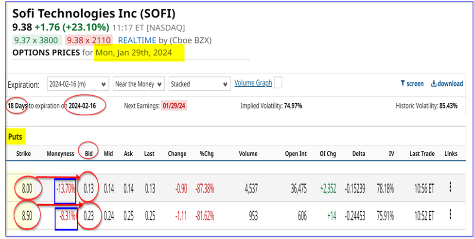 These are excellent returns for both existing investors in SOFI stock and investors who are willing to buy the stock at these strike prices should the stock fall in the next 3 weeks on or before Feb. 16.