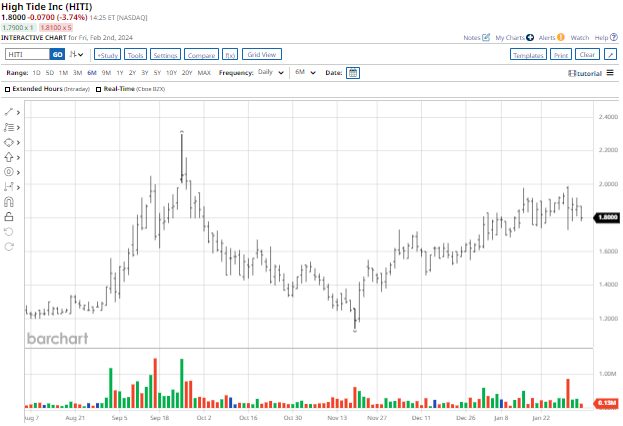 High Tide stock is up 9.2% year-to-date already, but still trades 22% below its 52-week high.