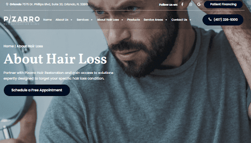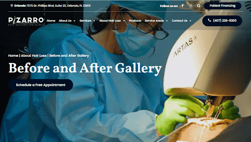 The website includes a before-and-after gallery, showcasing the remarkable transformations achieved through Pizarro Hair Restoration's services. This gallery communicates the clinic's expertise and its ability to deliver natural-looking results tailored to each patient's unique needs and aesthetic goals.