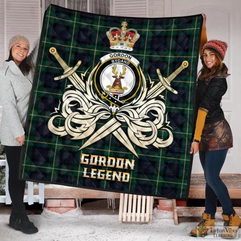 Gordon Old Tartan Quilt with Clan Crest and the Golden Sword of Courageous Legacy