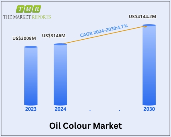 To view the original version on ABNewswire visit: Oil Colour Market is anticipated to reach US$ 4144.2 million by 2030, witnessing a CAGR of 4.7% during the forecast period 2024-2030 | The Market Reports