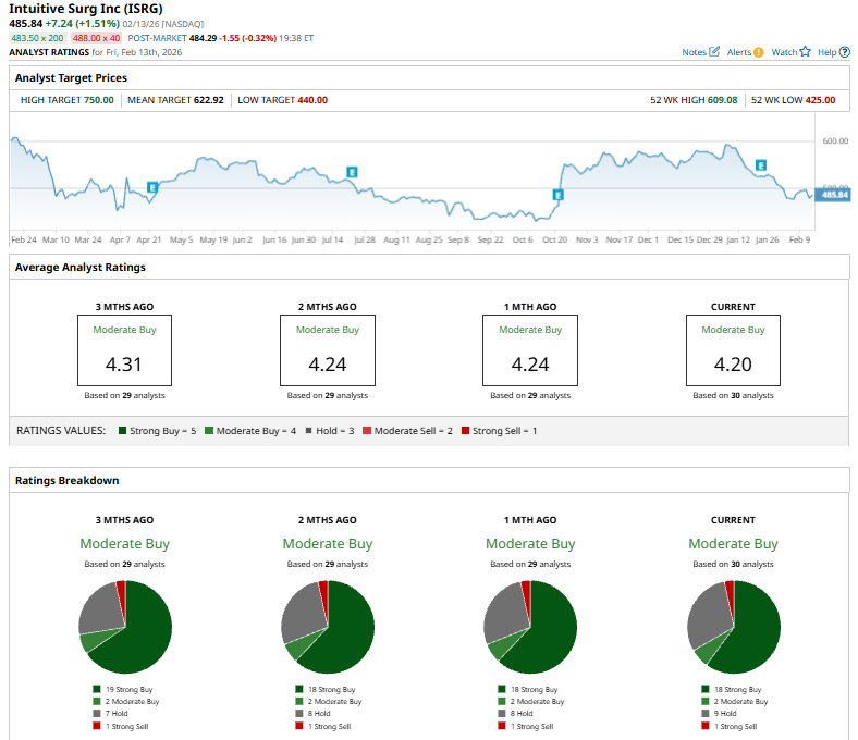 Valued at a market cap of $172.5 billion, Intuitive Surgical, Inc. (ISRG) is a medical technology company that develops and markets robotic-assisted surgical systems, instruments, and related digital solutions used in minimally invasive procedures. The California-based company provides surgical robots, instruments, accessories, and training to hospitals and surgeons worldwide.