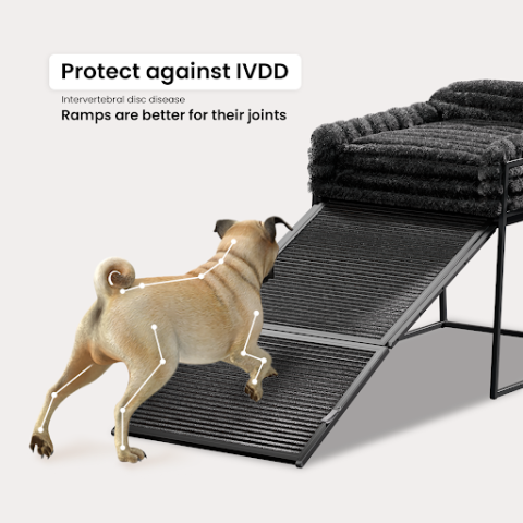 SeatMate goes above and beyond, offering a built-in ramp for easy access. After receiving feedback from veterinarians about the risks of intervertebral disc disease (IVDD), the team developed a collapsible ramp that gently folds in and out. The access ramp protects pets' joints, allowing them to come and go as they please. This feature is particularly beneficial for older pets with mobility issues that struggle with steps.