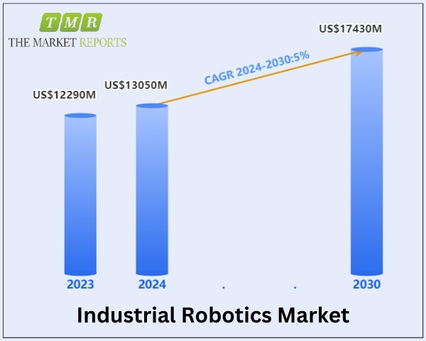 The global Industrial Robotics Market was valued at US$ 12290 million in 2023 and is anticipated to reach US$ 17430 million by 2030, witnessing a CAGR of 5.0% during the forecast period 2024-2030.