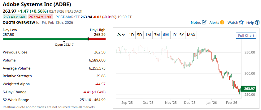 Adobe Systems (ADBE) stock was a bearish candidate that came up on one of my screeners for being rated a 100% Sell with a Strengthening short term outlook on maintaining the current direction.