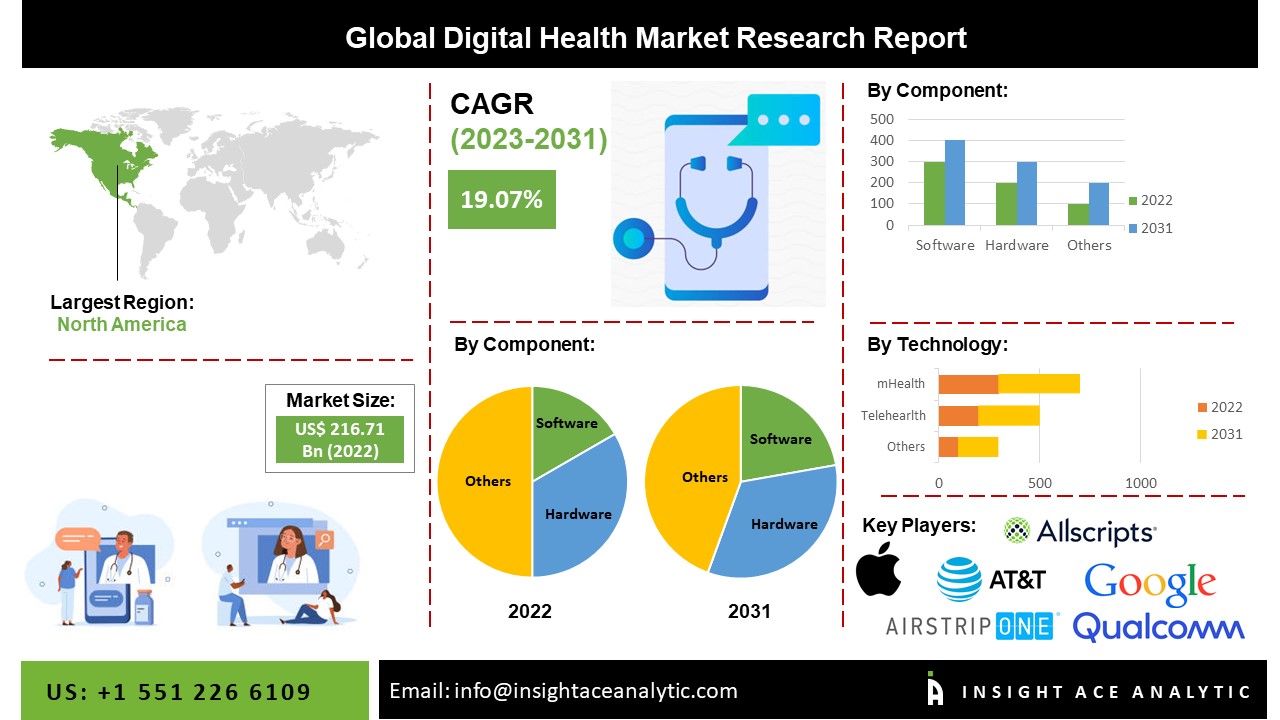 “Digital Health Market” in terms of revenue was estimated to be worth $248.58 billion in 2023 and is poised to reach $1,004.03 billion by 2031, growing at a CAGR of 19.56% from 2023 to 2031, according to a new report by InsightAce Analytic.