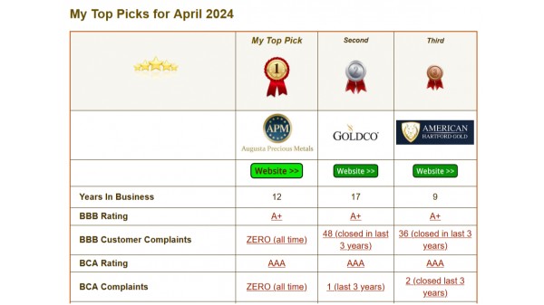 Gold IRA Companies Bulletin highlights Augusta Precious Metals as the top provider for 2024 based on the company's commitment to transparency, noting that it undergoes regular compliance audits, as well as its long-term partnerships. For beginners in particular, it offers expert guidance on precious metals and has a reputation for customer support for the lifetime of each account.