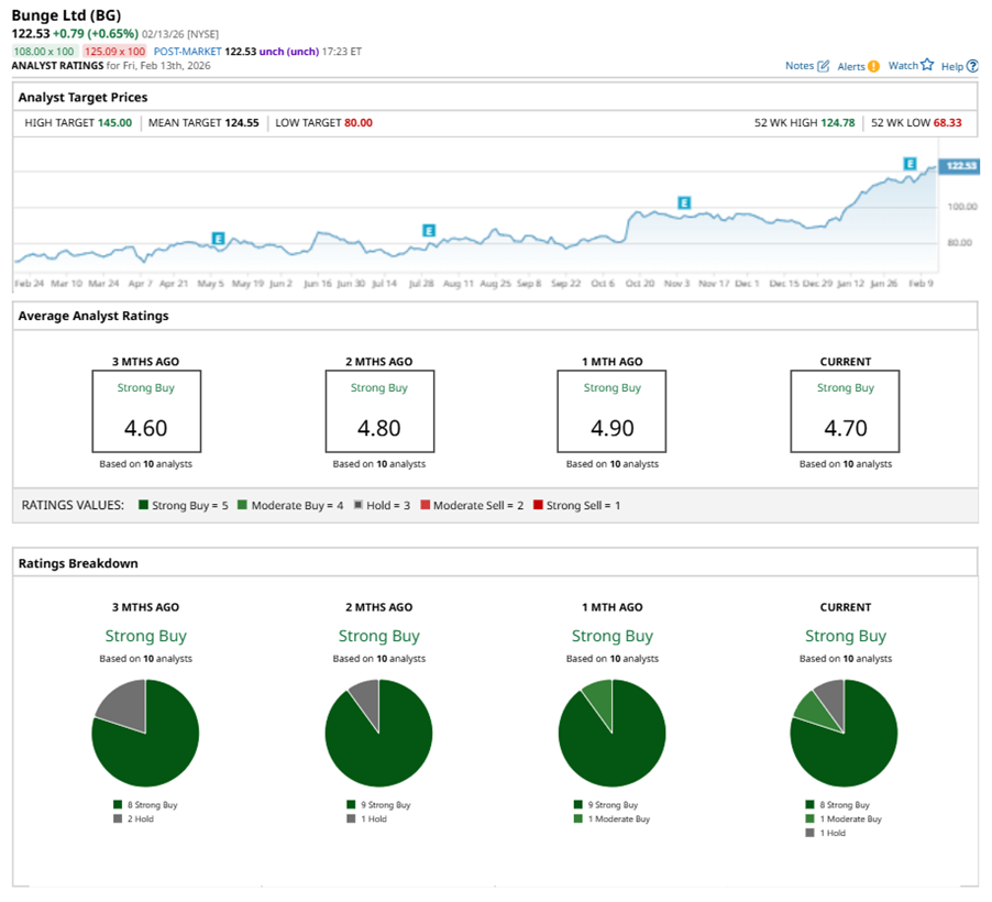 On Feb. 5, Morgan Stanley (MS) analyst Steven Haynes maintained a “Buy” rating on BG and set a price target of $130, implying a potential upside of 6.1% from current levels.