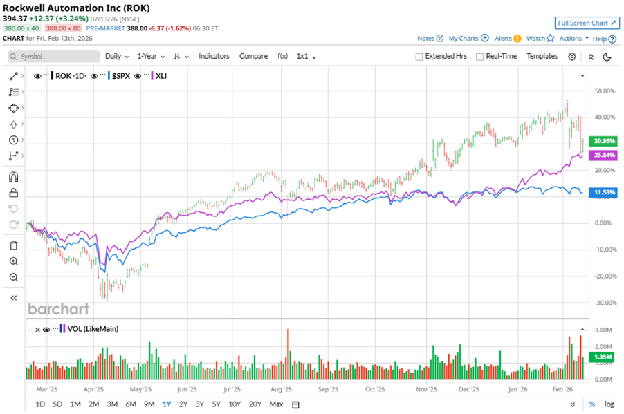 Shares of this largest pure-play automation company have outperformed the broader market over the past year. ROK has gained 32.1% over this time frame, while the broader S&P 500 Index ($SPX) has rallied nearly 11.8%. In 2026, ROK stock is up 1.4%, surpassing the SPX’s marginal fall on a YTD basis.
