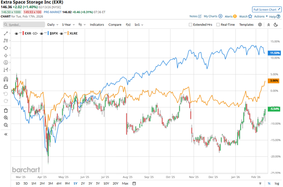Shares of Extra Space Storage have underperformed the broader market over the past 52 weeks. EXR stock has dropped 5.2% over this time frame, while the broader S&P 500 Index ($SPX) has rallied 11.8%. However, shares of the company are up 12.8% on a YTD basis, outpacing SPX’s marginal drop.
