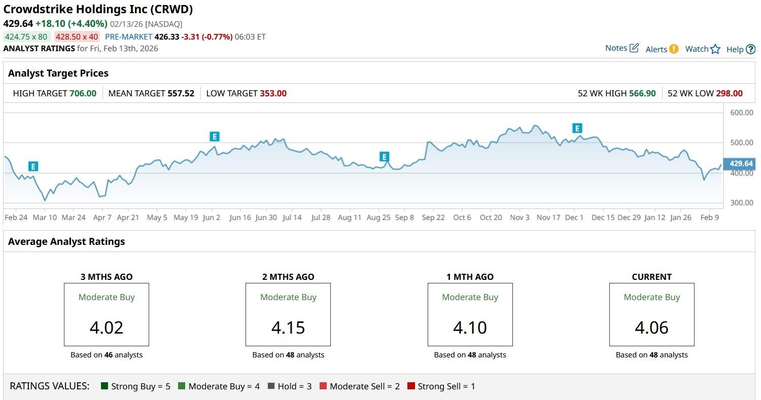According to Barchart, the consensus rating on CRWD shares sits at “Moderate Buy,” with price targets as high as $706, suggesting potential upside of more than 60% from here.