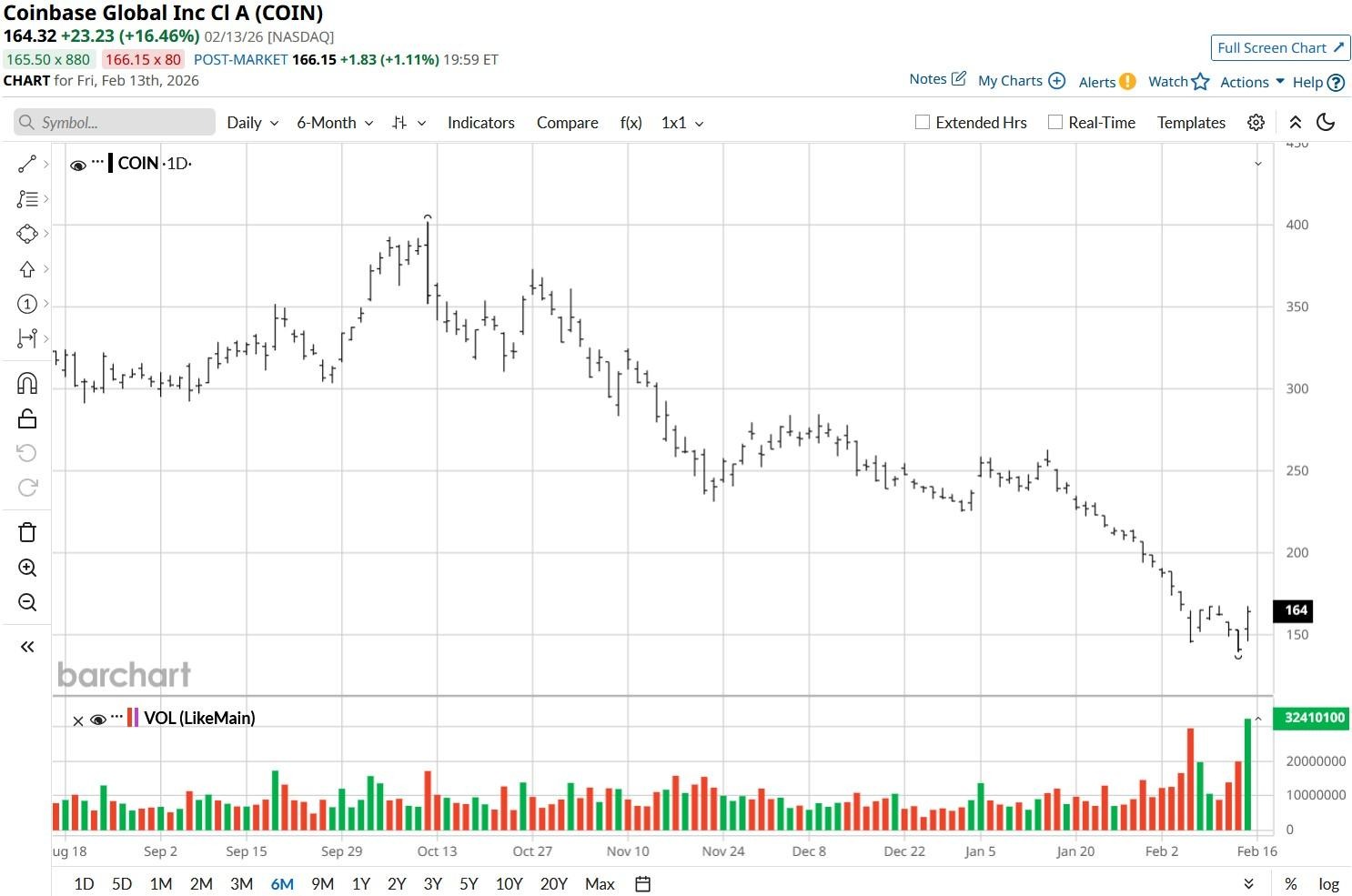 Coinbase (COIN) shares rallied as much as 20% in tandem with a sharp recovery in Bitcoin (BTCUSD) on Feb. 13, reversing much of their losses from disappointing earnings earlier in the week.
