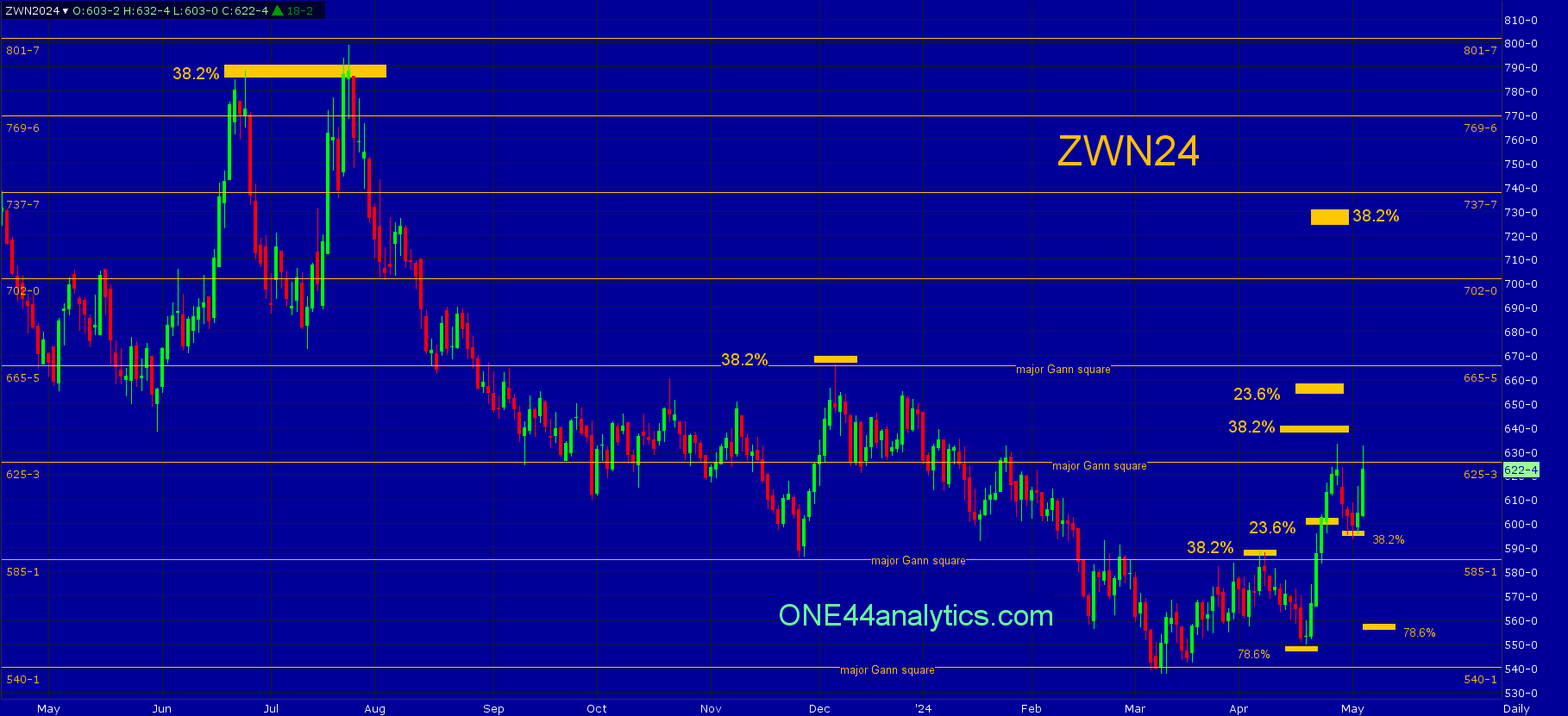 Tesla bottomed at 78.6%, COIN topped at a 61.8% retracement and Lean Hogs were stopped by 61.8% and then by the Bull market end at 78.6% on 4/23/24.