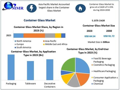 Pune,07,May,2024: The Container Glass Market, valued at US$ 64.54 billion in 2023, is projected to surge to around US$ 91.72 billion by 2030, boasting a robust Compound Annual Growth Rate (CAGR) of approximately 5.15%. This forecast reflects significant potential for growth in the container glass industry over the next decade.