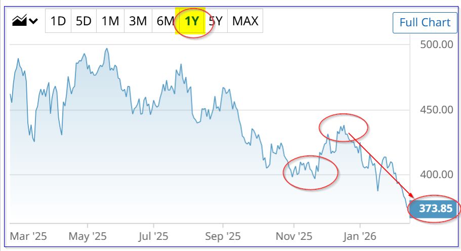 For example, Yahoo! Finance reports that 34 analysts have an average price target (PT) of $483.94. Barchart's survey shows a mean PT of $489.00, and AnaChart.com shows that 24 analysts have an average PT of $439.82. The latter is still 16.9% over today's price.