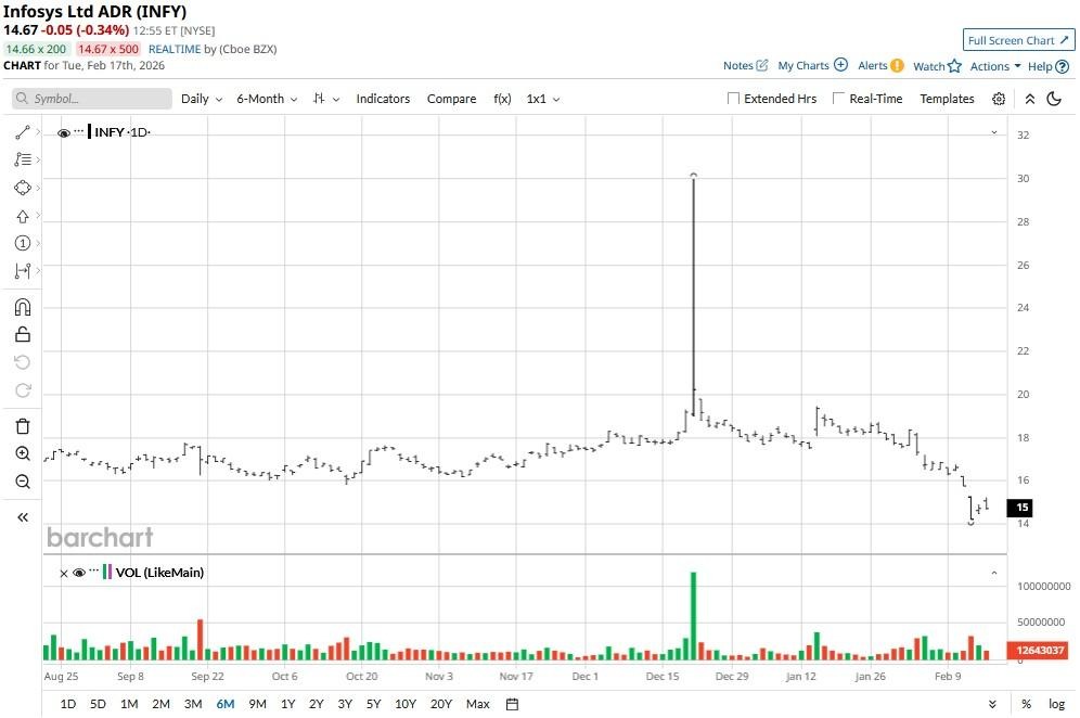 Infosys (INFY) stock opened higher on Feb. 17, after the company announced a strategic partnership with Anthropic, an artificial intelligence (AI) giant behind the Claude family of LLMs. According to the press release, this partnership will focus on developing advanced AI agents for highly regulated industries, including telecommunications, financial services, and manufacturing.