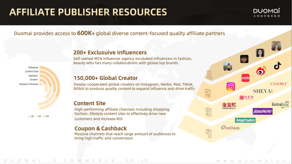 DUOMAI's success is rooted in its expansive global outreach, particularly in the United States, the United Kingdom, and the Asia-Pacific region. The agency's extensive network encompasses over 600,000 premium media outlets, including content websites, bloggers, and influencer WeChat communities. With a robust network of more than 150,000 bloggers and 200 Creators within DUOMAI's MCN agency, the agency's collaborations extend globally, engaging with rebate sites critical for driving sales growth.