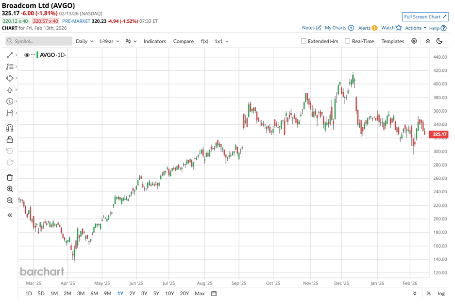 Headquartered in Palo Alto, California, Broadcom is a global technology powerhouse that develops semiconductor devices and enterprise software. With a market cap of roughly $1.5 trillion, it develops networking chips, wireless and broadband components, storage and server solutions, cybersecurity tools, and cloud infrastructure platforms.