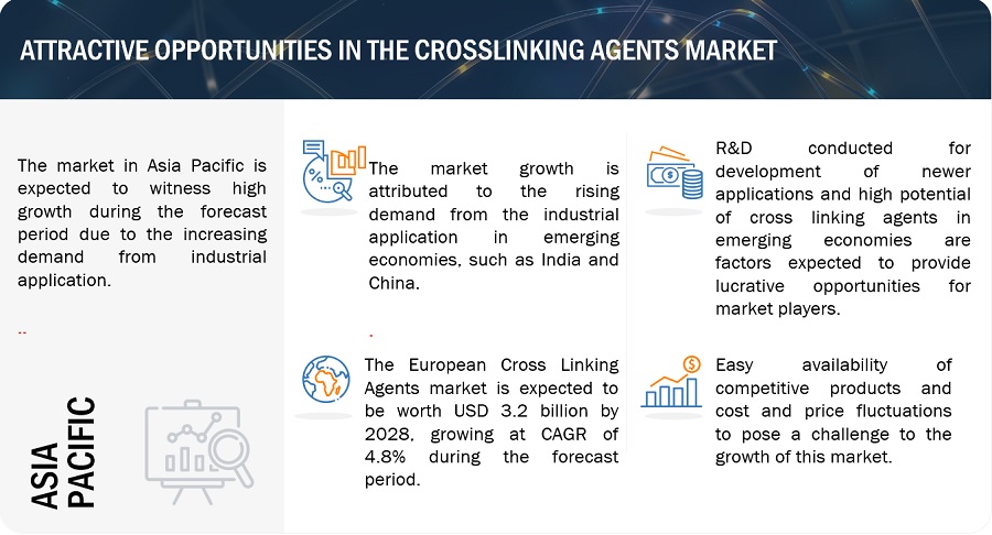 The Cross Linking Agent market size is projected to grow from USD 9.9 billion in 2023 to USD 13.6 billion by 2028, registering a CAGR of 6.5% during the forecast period. The growing demand for high-performance materials, increasing applications in industries like automotive and construction, growing emphasis on sustainability, and advancements in technology and research has fuelled the Cross Linking Agents market. Moreover, development of new applications, high potential in emerging countries of APAC, and multi-functionalities of cross linking agents is expected to drive the market during the forecast period.