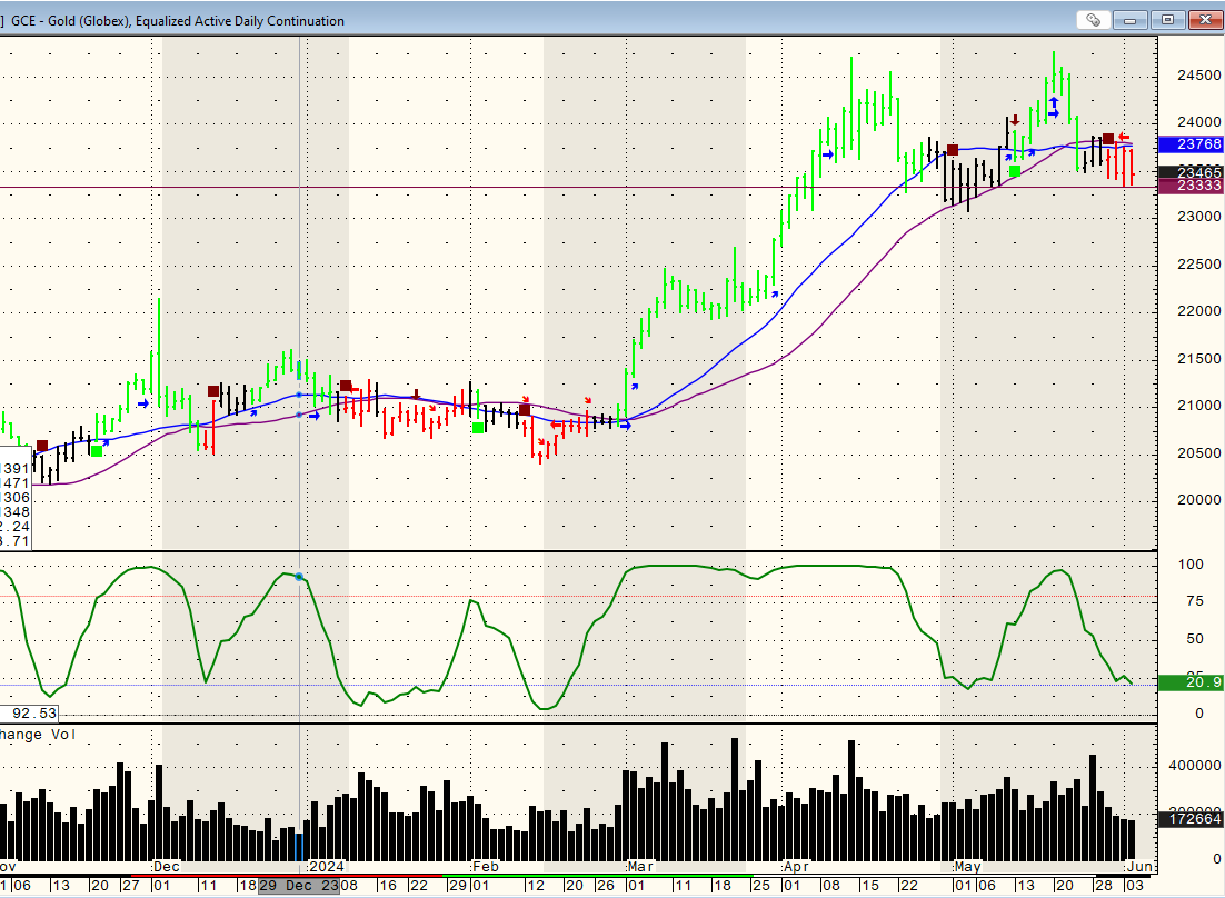 I am looking for what I call a price confirmation for potential short term sell. If Aug gold breaks below 2333.3 I would look for possible 2307.6. If prices go back above  2376.6 it will prove me I am wrong….