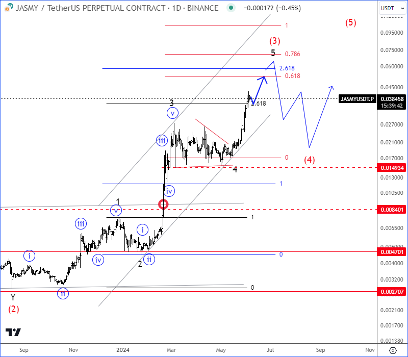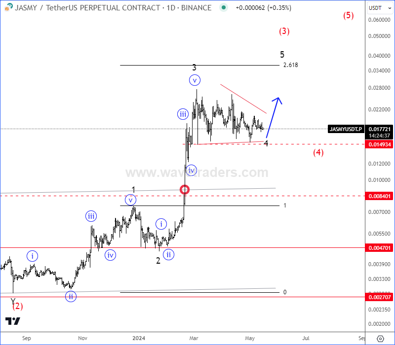 As you can see today, after three weeks, JASMY is nicely extending higher for wave 5 of (3) as expected and there can be space up to 0.50 - 0.70 area before we will see a higher degree wave (4) correction.