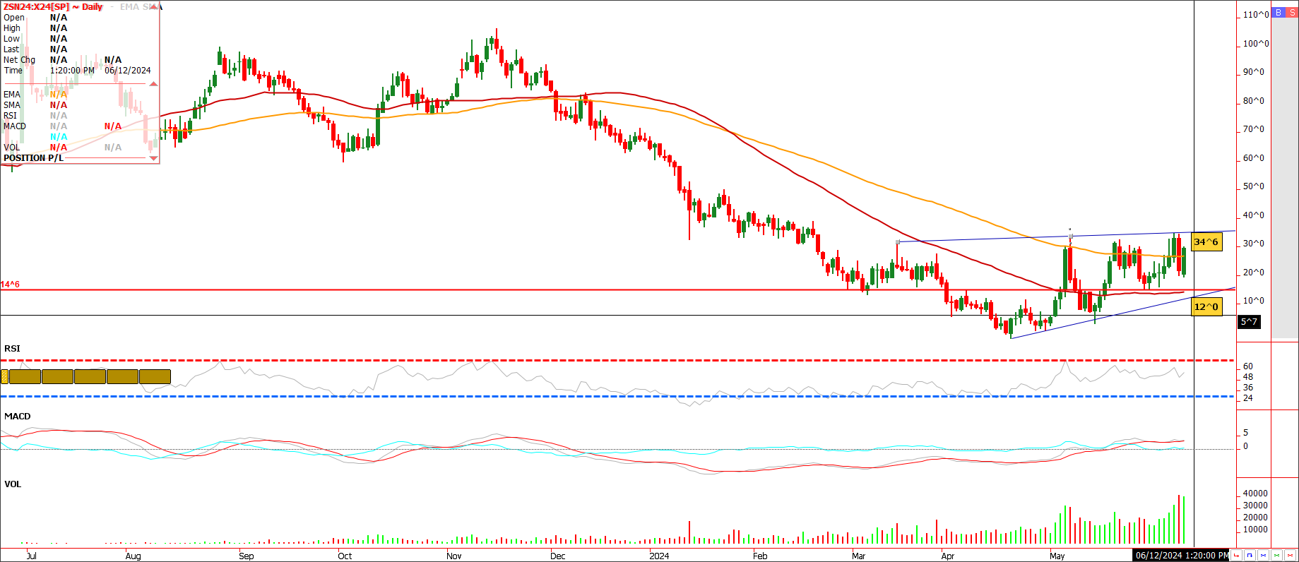 It is my belief that after Fridays sell-off, we saw some short covering by funds ahead of Wednesday’s 11am WASDE release from USDA. However, the big winner today in beans was old crop vs new crop. The spread in my view was aided on a few fronts. First, that US end users improved their bids by 5-10 cents in some parts of the central Midwest to possibly stimulate some producer selling. Second, Brazil’s basis at their ports improved by a dime as well. Brazil is completely harvested, and in my view the producer now has the upper hand on when they might sell. The US producer is nearing the close of the planting season. Brazil continues to hold the advantage vs. the US, landed China, but the much-improved basis at Brazil’s ports is making that advantage ever so small. Crop progress released by the USDA showed the US bean crop at 87% planted and 70% emerged. We also had our first look at bean condition as good to excellent came in at 72 percent which was the expectation. July/Nov spread attached. The spread remains supported on breaks but has had a hard time breaking 32/34 cents July over. If it can finally surpass resistance, look for higher bean prices across the Board. July/August beans traded back to 5.4 cents July over. The spread continues to invert. Should that remain beans are supported in my opinion. Bean demand is sluggish but that’s been a known in the market for a while. We are supply side driven now amid tight producer selling here and in South America. Watch the spreads for clues for direction in beans in my opinion.