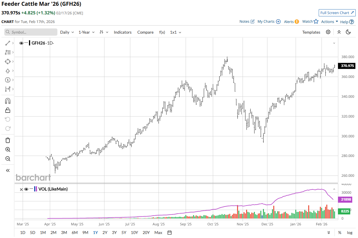WATCH IF THE NEXT GAP WILL BE FILLED IN THE MARCH'26 FEEDER CATTLE @ 376.70 - CURRENTLY THE CONTRACT HIGH IS 378.60