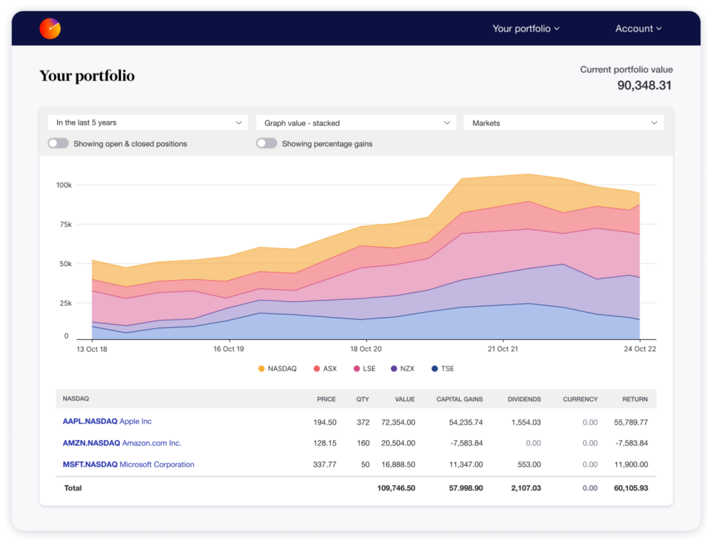 Sharesight is a portfolio tracker that helps you track your investments from over 60 stock exchanges. The service is free up to 10 holdings and one portfolio. With the free version, you will only get access to a number of reports available. To increase such limits and unlock other reports, you will have to subscribe to the paying plan starting at $7 / month