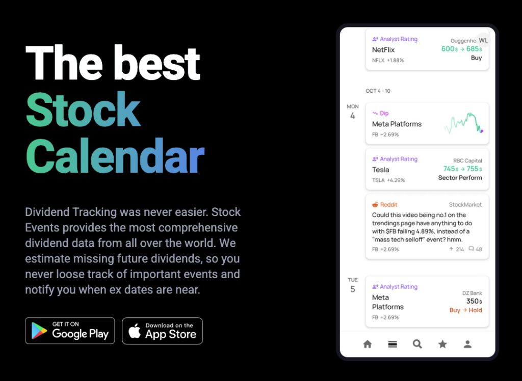 Stock Events app is the portfolio tracker app primarily focusing on tracking dividend and company’s events in the mobile app. The Stock Events app is free to use, but you can unlock more functionalities in the premium plan.