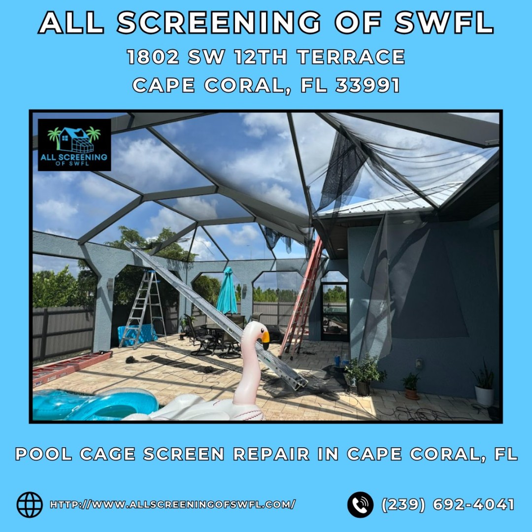 CAPE CORAL, FL - All Screening of SWFL, a locally owned and operated screening contractor serving Cape Coral and the greater Southwest Florida region, is proud to announce its standing as the area's most trusted provider of professional pool screen repair, pool enclosure rescreening, lanai screen restoration services, and pool cage construction. With a growing base of satisfied homeowners across Lee and Collier counties, the company has built a reputation for delivering fast, reliable, and high-quality results — backed by licensed and insured technicians who understand the unique demands of Florida's climate, storm season, and coastal environment.