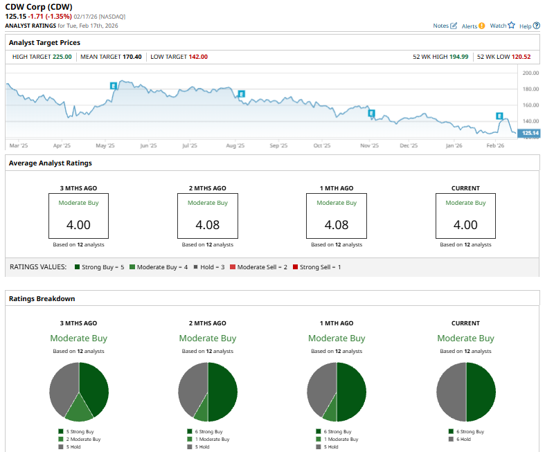 On Feb. 5, Citigroup analyst Asiya Merchant maintained a “Neutral” rating on CDW and modestly raised the price target to $150 from $148.