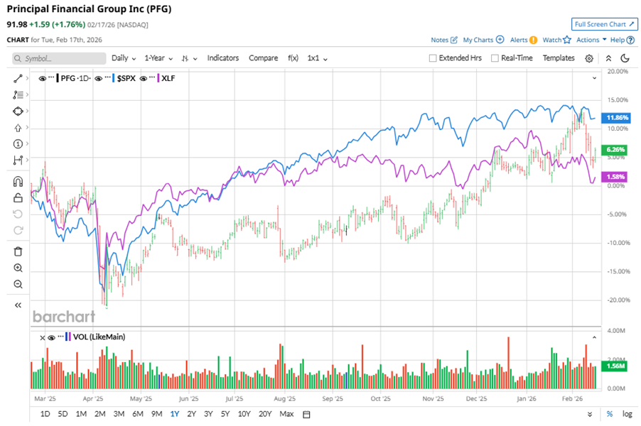 Shares of this global financial services company have underperformed the broader market over the past year. PFG has gained 7.4% over this time frame, while the broader S&P 500 Index ($SPX) has rallied nearly 11.9%. However, in 2026, PFG stock is up 4.3%, surpassing the SPX’s marginal fall on a YTD basis.