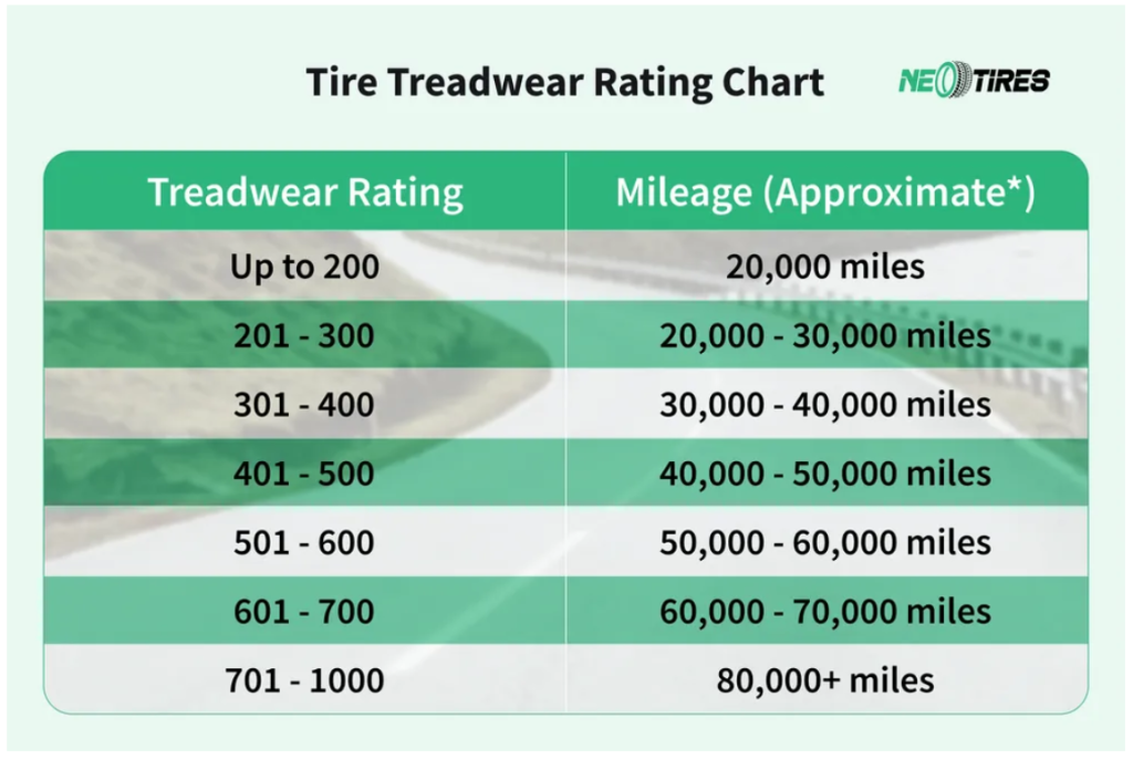 Now let’s talk in more detail about the 3 basic aspects that the UTQG rating covers. First, let’s see what this entails in terms of tire treadwear.