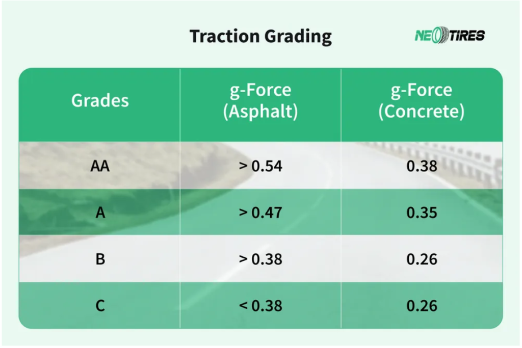 The third aspect of the UTQG rating refers to the traction power of the tire. More than that, this mainly refers to the tire’s abilities in wet conditions, especially its wet braking. So, here we talk more about tire safety in wet conditions.
