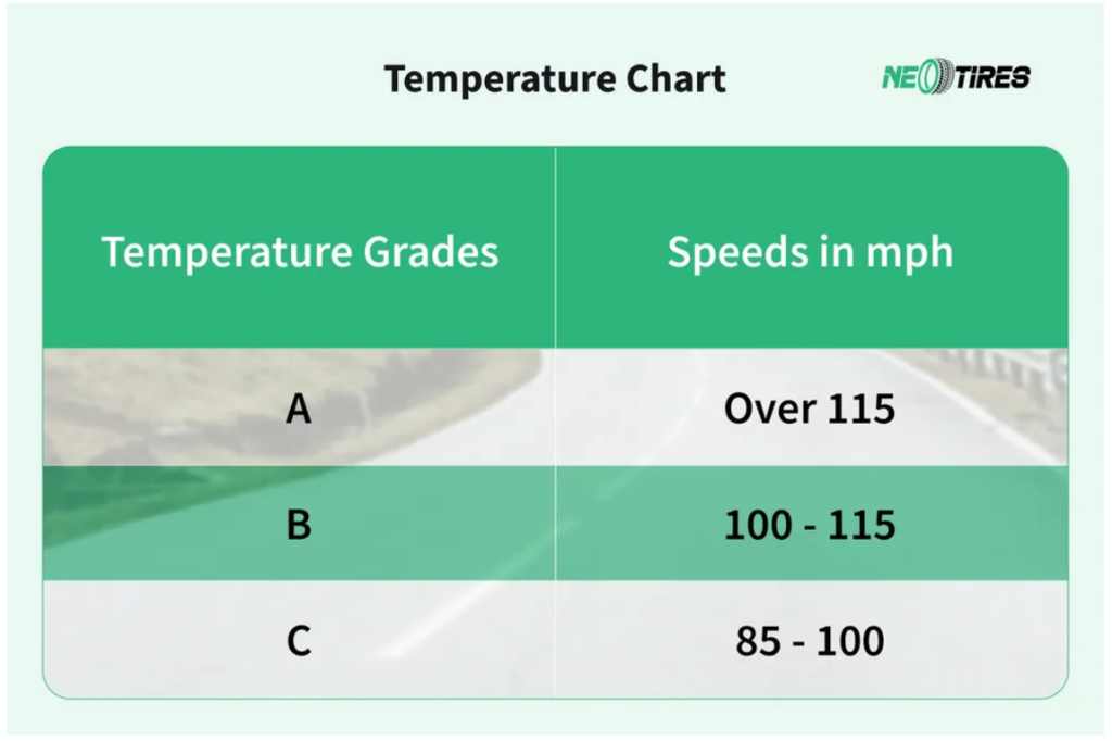 There are 3 heat resistance thresholds. It is about A, B, and C temperature ratings. A is the most resistant while C is the most sensitive. According to official statistics, 62% of all US tires are A-rated. With such a tire, the vehicle is more agile, safer, and more resistant at high speeds.