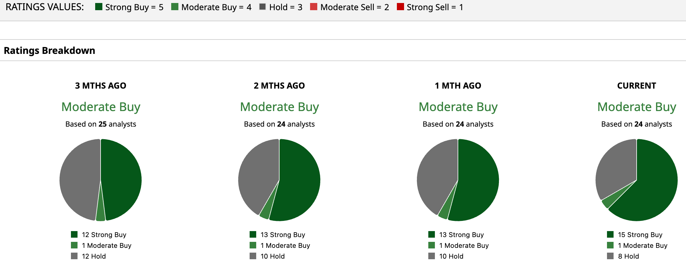 Overall, Wall Street assigns CSCO stock an overall “Moderate Buy” rating. Out of 24 analysts covering the stock, 15 recommend “Strong Buy,” one suggests “Moderate Buy,” and eight advise “Hold.”