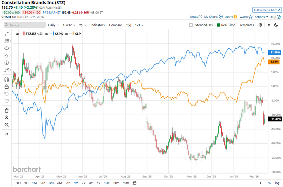 Shares of the wine, liquor and beer company have underperformed the broader market over the past 52 weeks. STZ stock has declined 6.3% over this time frame, while the broader S&P 500 Index ($SPX) has gained 11.9%. However, the stock is up 10.7% on a YTD basis, outpacing SPX’s marginal decrease.