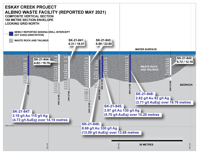 VANCOUVER, BC / ACCESSWIRE / October 4, 2021 / Skeena Resources Limited (TSX:SKE)(OTCQX:SKREF) ("Skeena" or the "Company") is pleased to report that it has initiated the Phase II drill investigation of the Albino Waste Facility ("AWF") at the Eskay Creek gold-silver project ("Eskay Creek" or the "Project") located in the Golden Triangle of British Columbia. The Phase II program is designed to test the Au-Ag grade potential of the remaining untested portions of the AWF on 50 metre drill spacings as follow up from the initial investigation completed in Q1 2021. Analytical results from the 2021 Phase III drill program at the Snip gold project ("Snip") are also included in this release. Reference images are presented at the end of this release as well as on the Company's website.