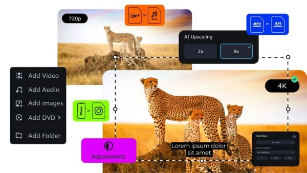 AI Upscaling. Thanks to AI upscaling technology, users can increase video resolution without losing quality up to 8 times. Upscaling significantly improves old recordings and low-resolution videos, making them clearer and more detailed.