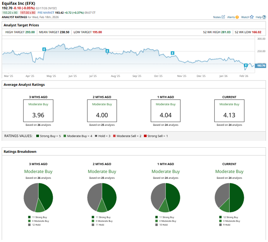 On Feb. 5, BMO Capital cut Equifax’s price target to $195 and maintained a “Market Perform" rating.