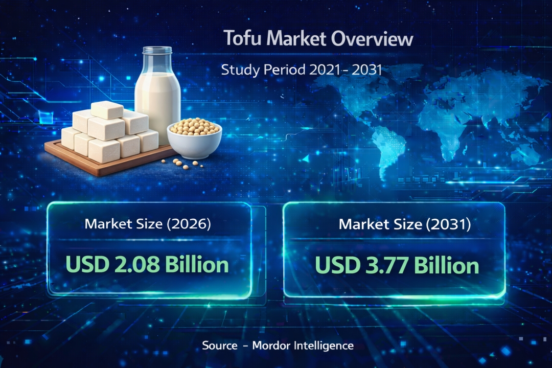 According to a research report by Mordor Intelligence, the global tofu market size is projected to grow from USD 2.08 billion in 2026 to USD 3.77 billion by 2031, reflecting strong tofu market growth during the forecast period. This expansion is supported by rising adoption of flexitarian and plant-based diets, affordability compared to alternative plant proteins, and increasing consumer awareness of soy-based nutritional benefits.