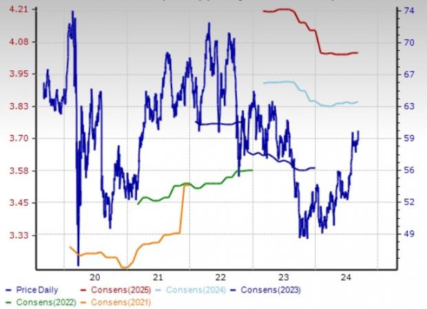 EVRG’s long-term earnings growth is pegged at 5%. EVRG’s dividend yield is pegged at 4.35%. The Zacks Consensus Estimate for EVRG’s 2024 and 2025 earnings per share reflects an increase of 0.3% and 0.2%, respectively, in the last 60 days.