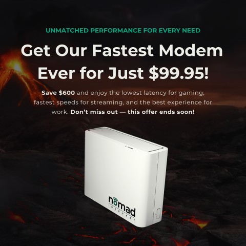 Nomad Internet is excited to present the best deal on Nomad Raptor, the company's fastest and most powerful modem yet. Customers can now purchase the Nomad Raptor for a limited time for $99.95, saving them $600!