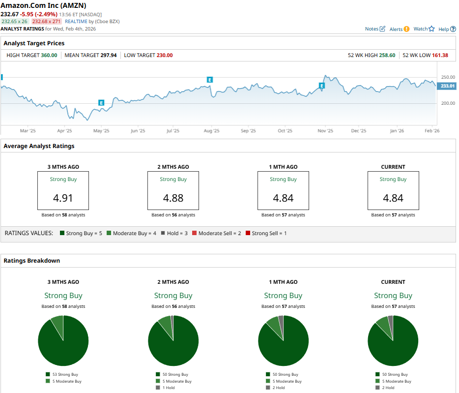 Amazon’s recent struggles have created an opportunity for improvement, with analysts issuing a consensus “Strong Buy” rating and a mean price target of $297.94, reflecting an upside potential of roughly 29% from the current market rate.