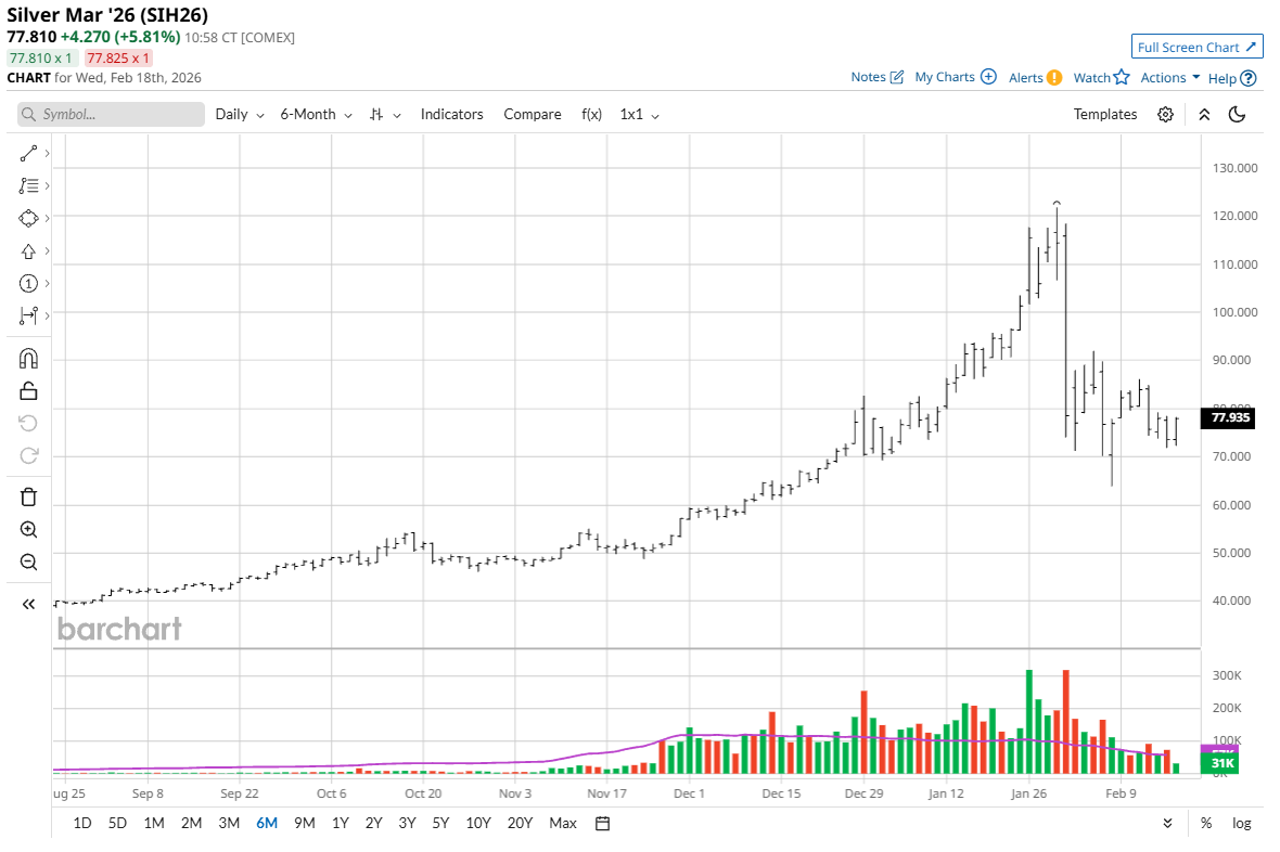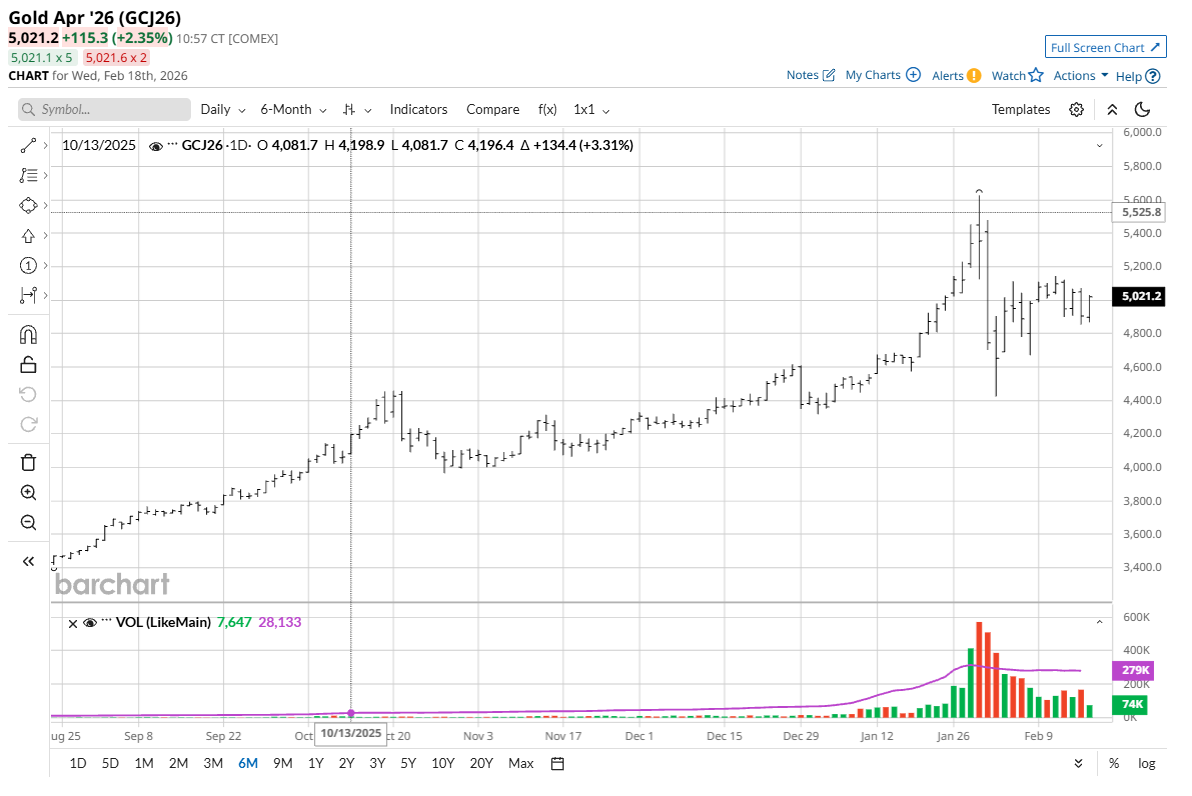 Gold and silver bulls have somewhat stabilized prices and stopped the bleeding, which favors the bullish camp. What is important, technically, at present, is that gold and silver prices hold above solid chart support levels at the February lows. For April Comex gold futures, the February low is $4,423.20. For March Comex silver futures, the February low is $63.90. There are likely a large number of pre-placed sell-stop orders in futures markets that reside just below those key near-term technical support levels.