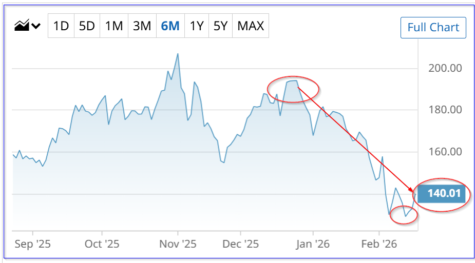 That is higher than other analysts' PTs. Yahoo! Finance reports that 27 analysts have an average PT of $189.92. But that PT is still 35% higher than today's price.