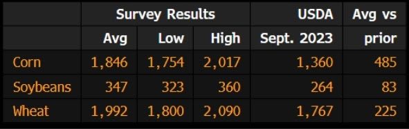 The USDA will release their quarterly grain stocks report today at 11am CT. Below are the estimates. Looking at price action over the last 10 years for corn and soybeans, this report has been a coinflip with each grain posting 5 higher closes and 5 lower closes on report day.