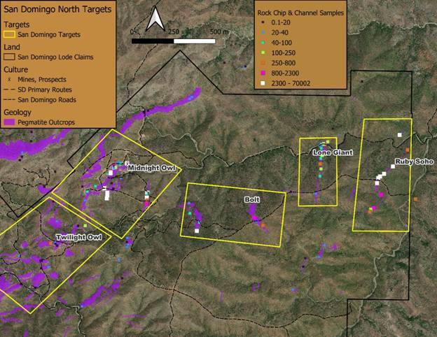 Channel Samples at Midnight Owl Return Excellent Lithium Grades and New Target Identified at The San Domingo Pegmatite Project
