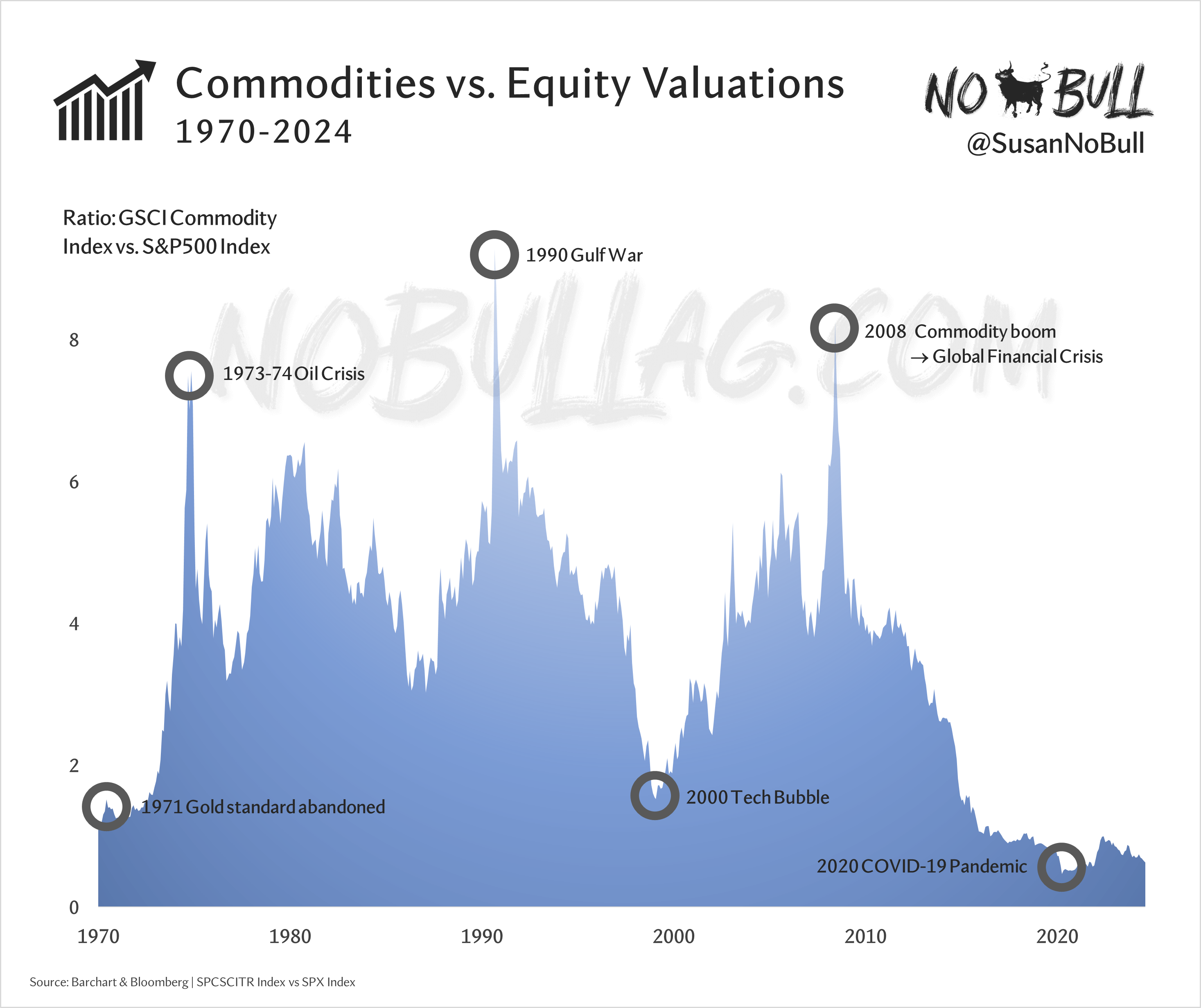 50+ years of commodities vs. equities in one chart: